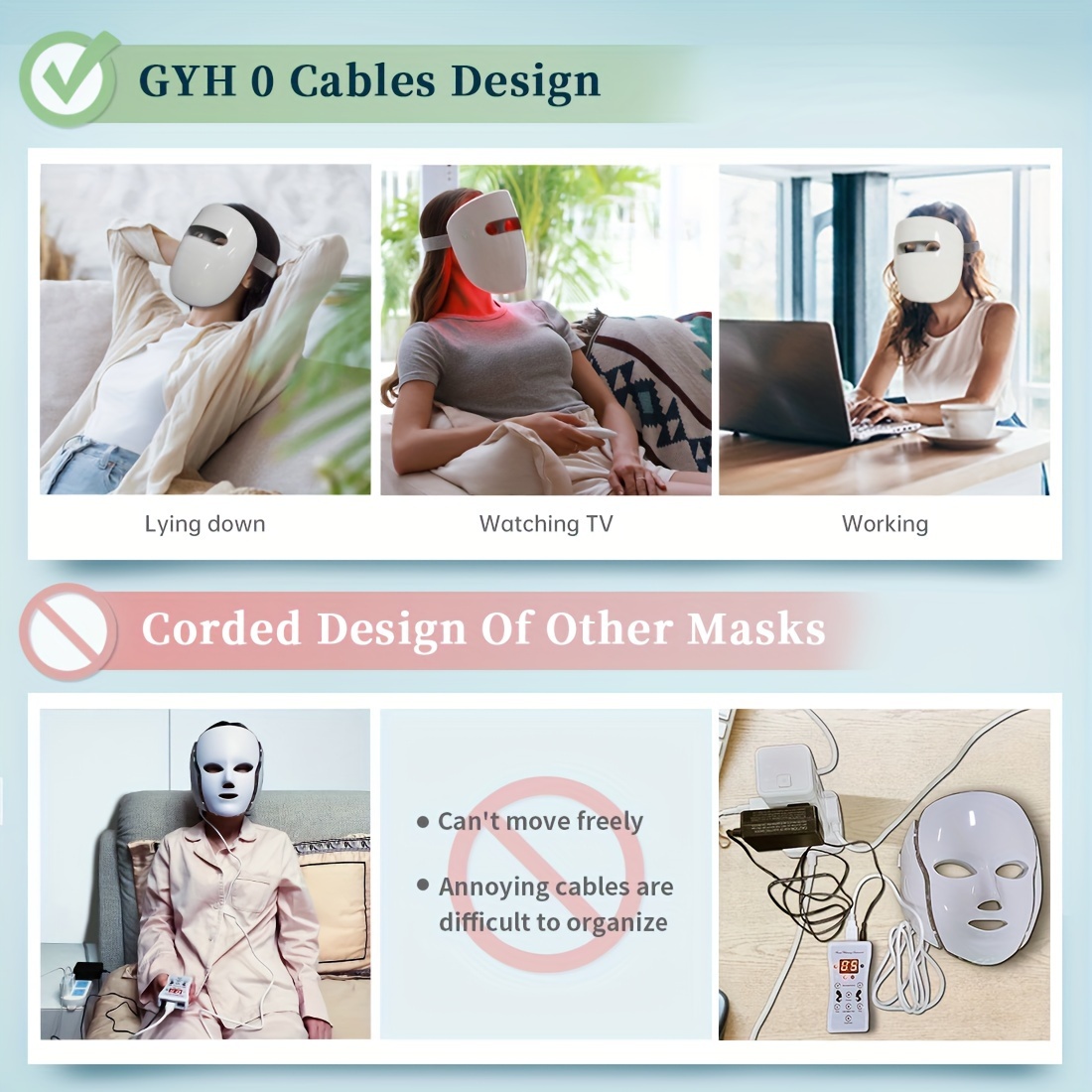 Cloud-SSS RB-081 | -Grade 8-Color LED Light Mask - Wireless, Comfortable, And Designed for Daily Home Skincare - Red & Infrared (630nm\u002F820nm) for Skin, Reduction, And Light Beige