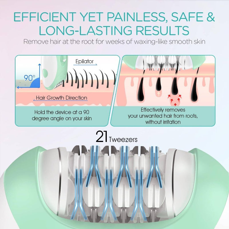 Women'S Cordless Epilator with 21 Tweezers & LED Light - 2-Speed Rechargeable Hair Removal Device, Ergonomic Design, Non-Standard Battery, for Home & Professional Use